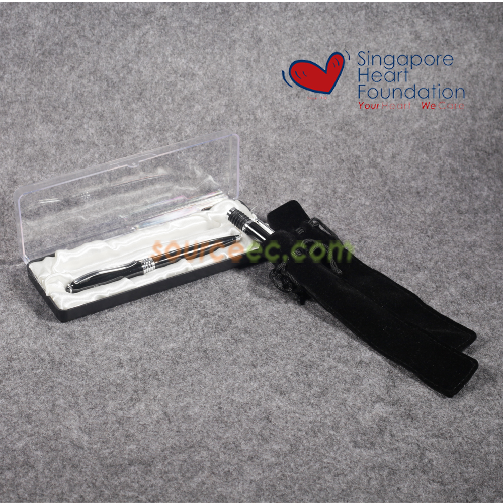 The Singapore Heart Foundation (SHF), formerly known as the Singapore National Heart Association (SNHA), is a non-profit charitable organisation at the forefront of the battle against heart disease in Singapore. SHF is a member of the World Heart Federation and has strong ties with other heart foundations in the Asia Pacific region.Singapore Heart Foundation customized a pen gift set which is made by Source EC. Black metal pen looks noble and generous. Also, velvet bag and special pen box make it more precious. In business activities, carrying a high quality metal pen makes you look more professional.