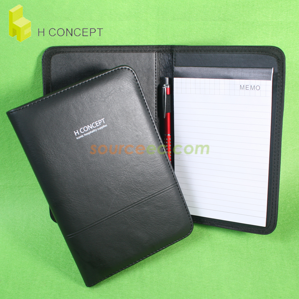 H Concept reflects the epitome of versatility. Started as a local hotel furniture supplier, H Concept takes a passionate approach to business, it actively engage end users in understanding market requirements and work simultaneously with the production to reinvent solutions and to streamline processes. Customers continue to enjoy good design at great value through the cost savings that it built on. Today, H Concept offer a diverse portfolio of furniture, equipment and linen catering to concierge, banquet, conference, in-room dining, housekeeping and unique demands.To thanks to all its overseas dealers, clients and prospects for the ongoing support, H Concept especially customized a CEO notebook at Source EC. This notebook is double pressing lined on PVC cover 2, it looks more dignified with the white on black logo. Moreover, Inserted name card or documents are on the left 3, including 30 sheets lined note paper and the loop to hold the pen in the middle. This design is simple but practical, it abandons all redundant ornament, just like its design concept. Also, that is also the reason why people choose H Concept: good design at great value through the cost savings that it built on.